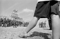 Le NaadamUne fois par an, les 11 et 12 juillet, a lieu à Ulan Bator , la capitale de la Mongolie, le grand Naadam . Il s'agit des compétitions des trois jeux traditionnels mongols: lutte, tir à l'arc, course de chevaux. Cette fête nationale réunit dans une même liesse citadins de la capitale et nomades des steppes: les athlètes sont considérés comme de véritables héros nationaux. Pendant toute l'année, les éleveurs se sont préparés aux festivités. Des naadams régionaux leur ont permis de sélectionner les meilleurs concurrents. Un peu avant la fête, les familles affluent de tous le pays et campent aux abords de la capitale. |
